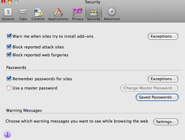 Tip: Always use a master password in Firefox, or your site passwords will be easy to hack.